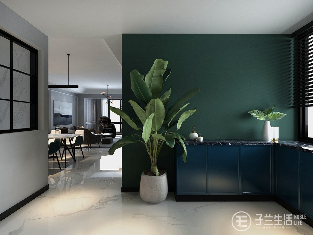 以墨綠和藍色做為玄關主基調,生動的色彩,瞬間讓人心情變得美美的。