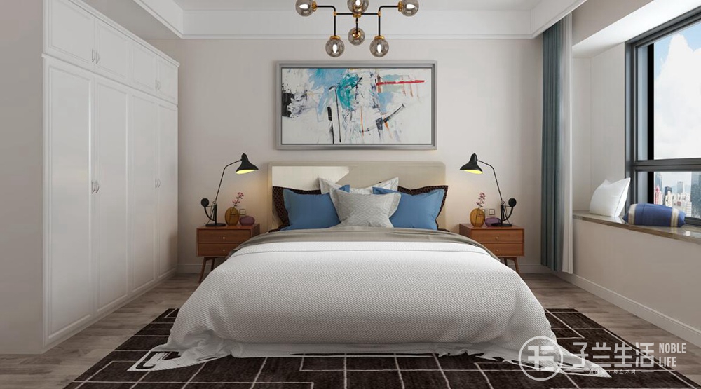 溫暖的木色,調(diào)皮的烏云,讓睡眠的空間亦安靜 整潔 不失趣味。一盞燈,一束光,剛剛好的輕松舒適,讓疲憊無從打擾。