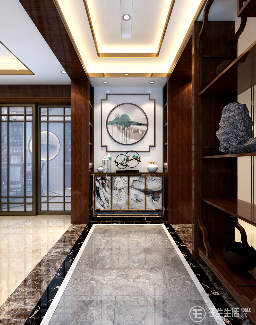 本案是以新中式風(fēng)格去進(jìn)行設(shè)計(jì)的,新中式是從古流傳至今的裝飾元素結(jié)合現(xiàn)代裝修材質(zhì)所形成的一種裝修風(fēng)格,...