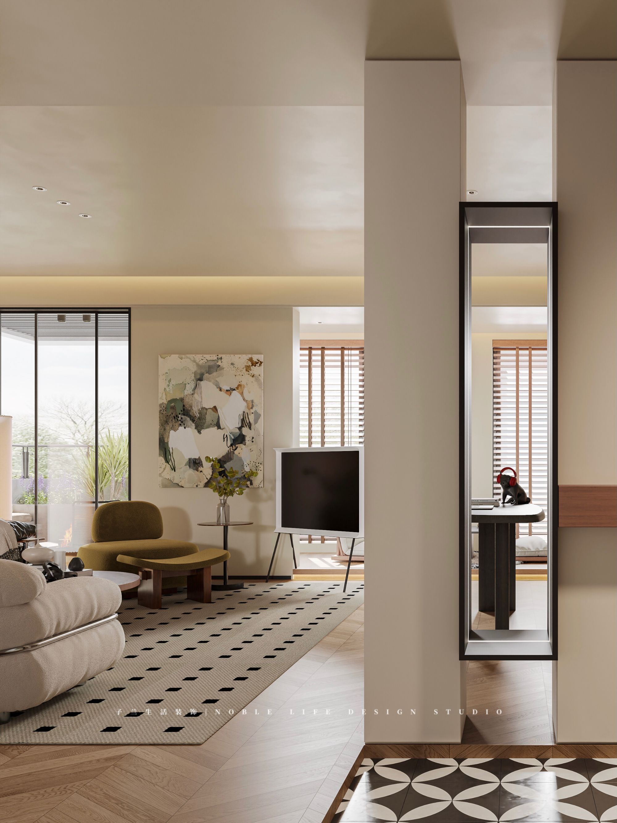【家的簡(jiǎn)介】本案為一家四口的居所,設(shè)計(jì)師致力于給業(yè)主更豐富的居家生活體驗(yàn)。黑白灰不等于冷清,用設(shè)計(jì)讓...