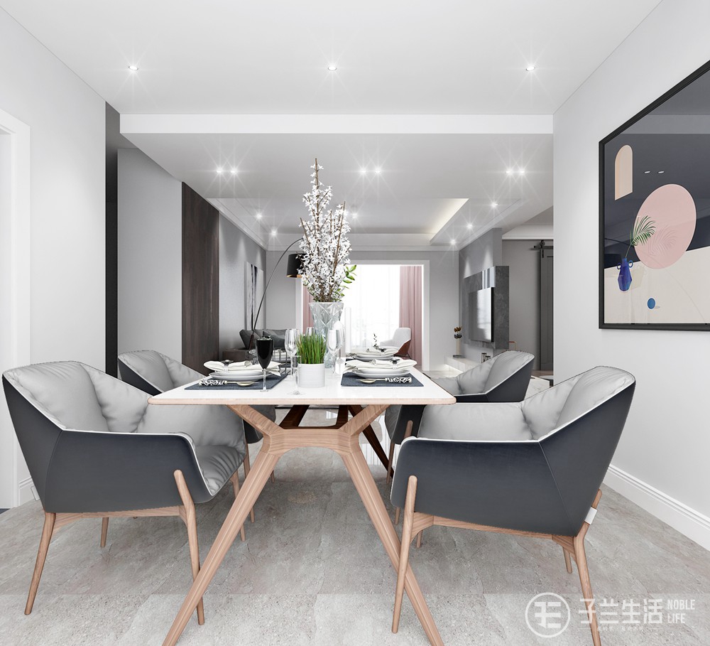這是一個(gè)繁華的時(shí)代,這也是一個(gè)回歸的時(shí)代,奢華已不再成為主流追求,舒適卻早已悄然攻占人心。本案最直白的裝飾語(yǔ)言體現(xiàn)空間和家具營(yíng)造的氛圍,進(jìn)而賦予空間個(gè)性和寧?kù)o。