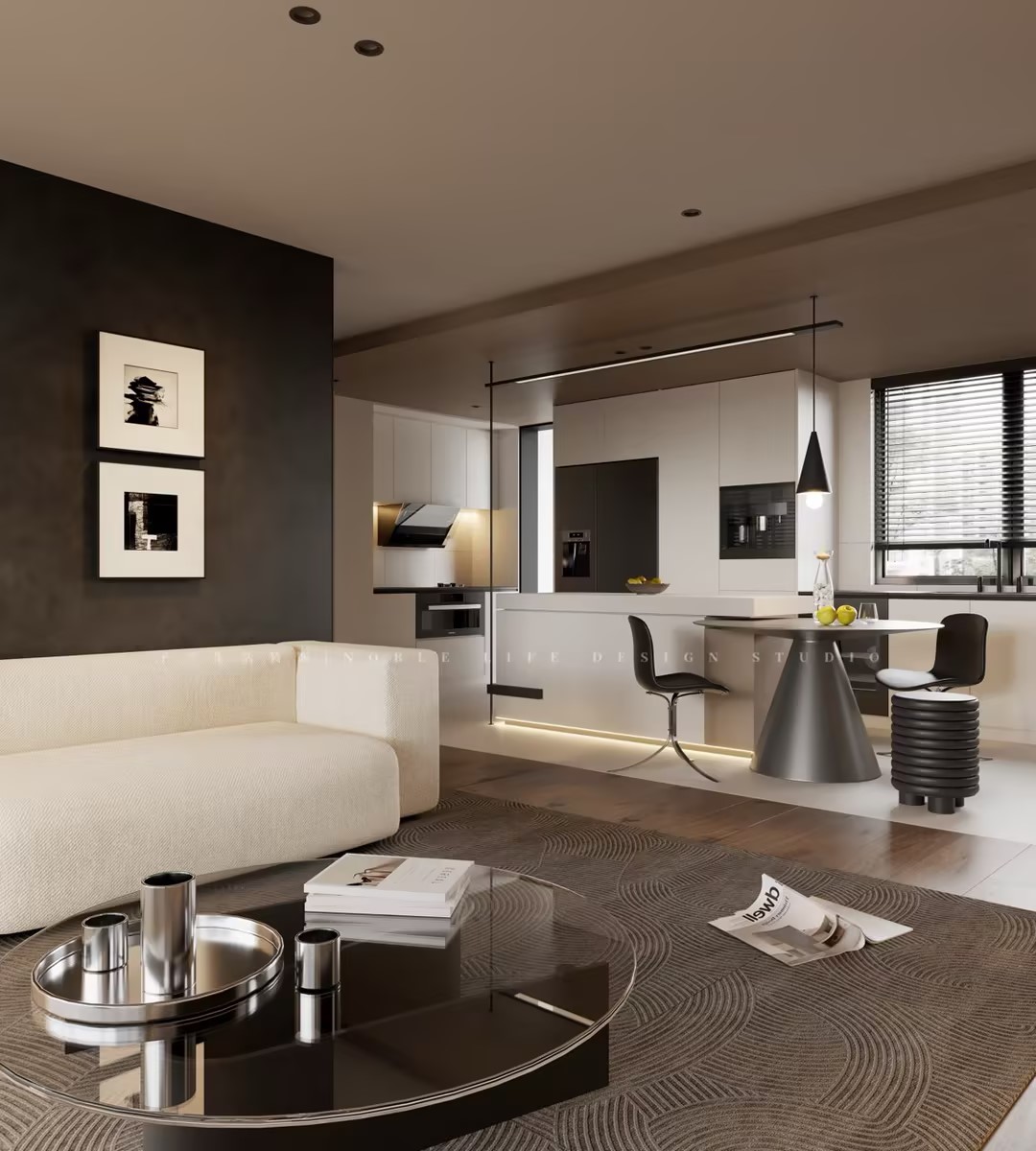 【家的簡介】多數(shù)人裝修前會(huì)直接pass掉深色,尤其是小戶型。因?yàn)樵谛】臻g中使用深色調(diào)會(huì)產(chǎn)生壓抑的感覺...