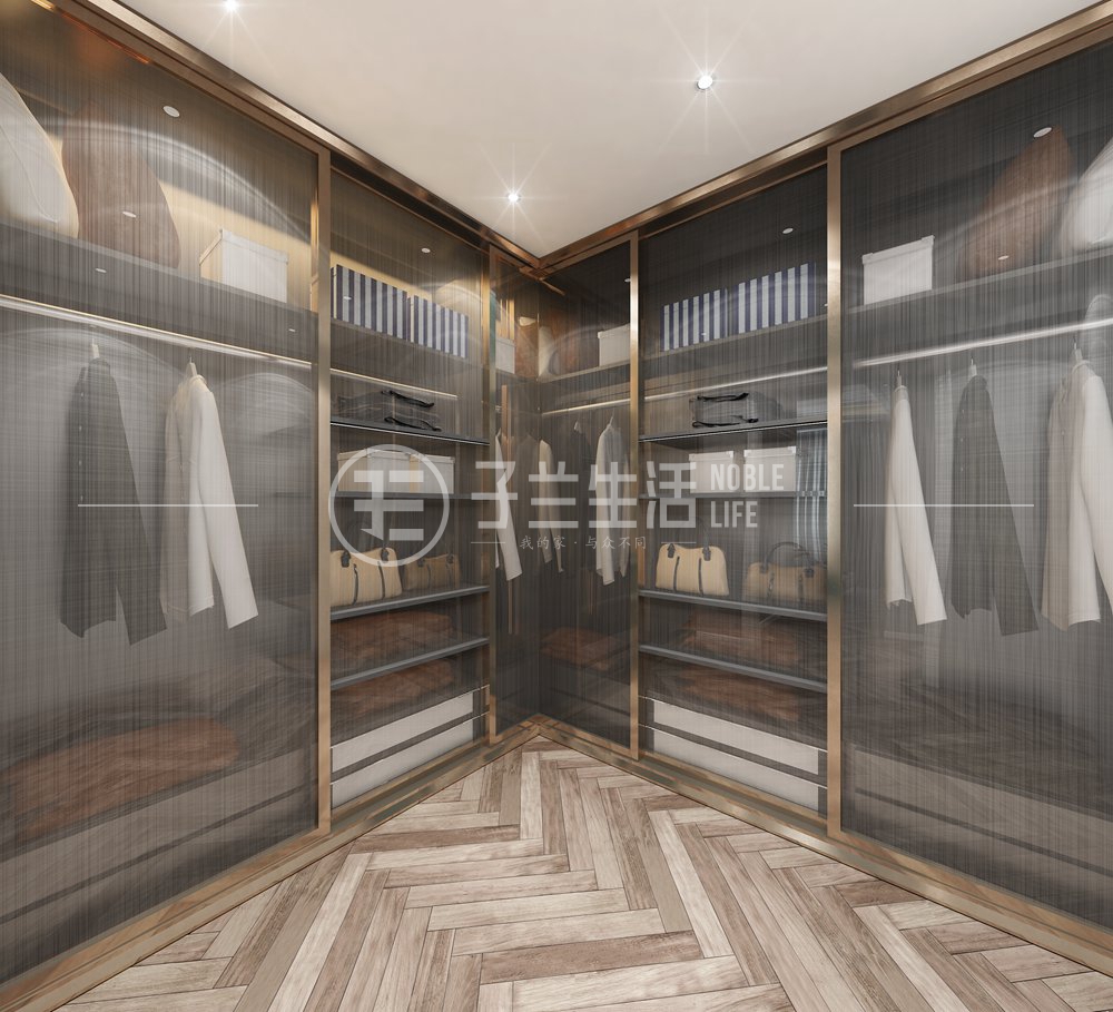 金屬的框架配上拉絲玻璃的柜門,現(xiàn)代感十足,透過玻璃衣物一目了然,再也不為日常搭配而費時費力。