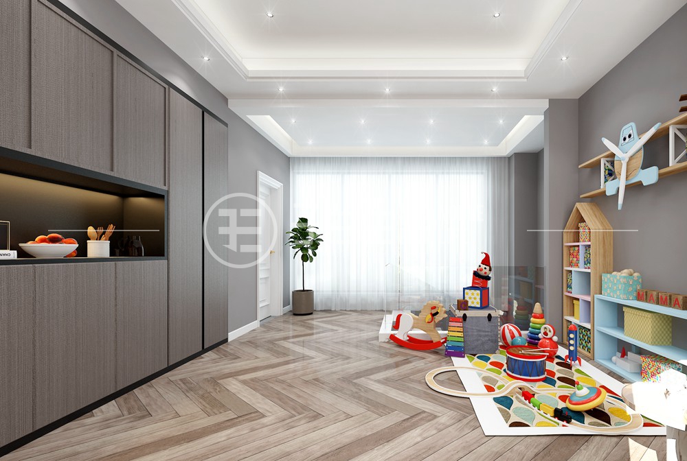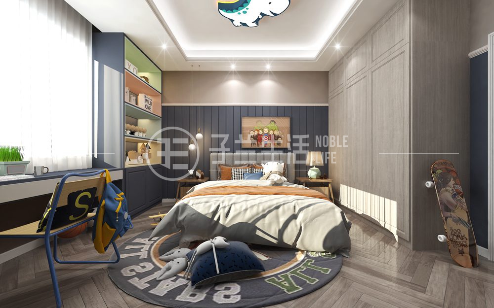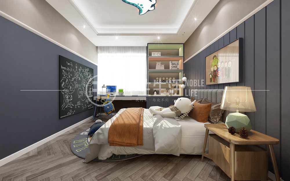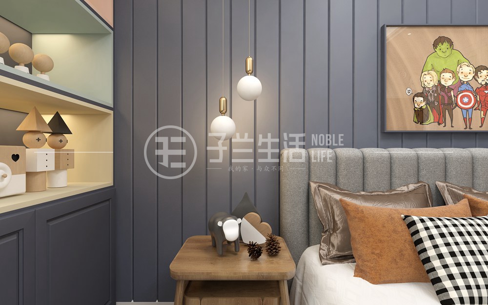 天真活潑的色彩是對兒童房最好的表達(dá)方式,沒有繁瑣的造型,沒有復(fù)雜的燈具窗簾,恰當(dāng)?shù)膲γ娣稚煨停尫块g別具一格。這個空間以后將是小朋友自己的一方天地,睡覺、學(xué)習(xí)、儲物、收納、展示等功能應(yīng)有盡有,讓他擁有并度過一個快樂值得回憶的童年。