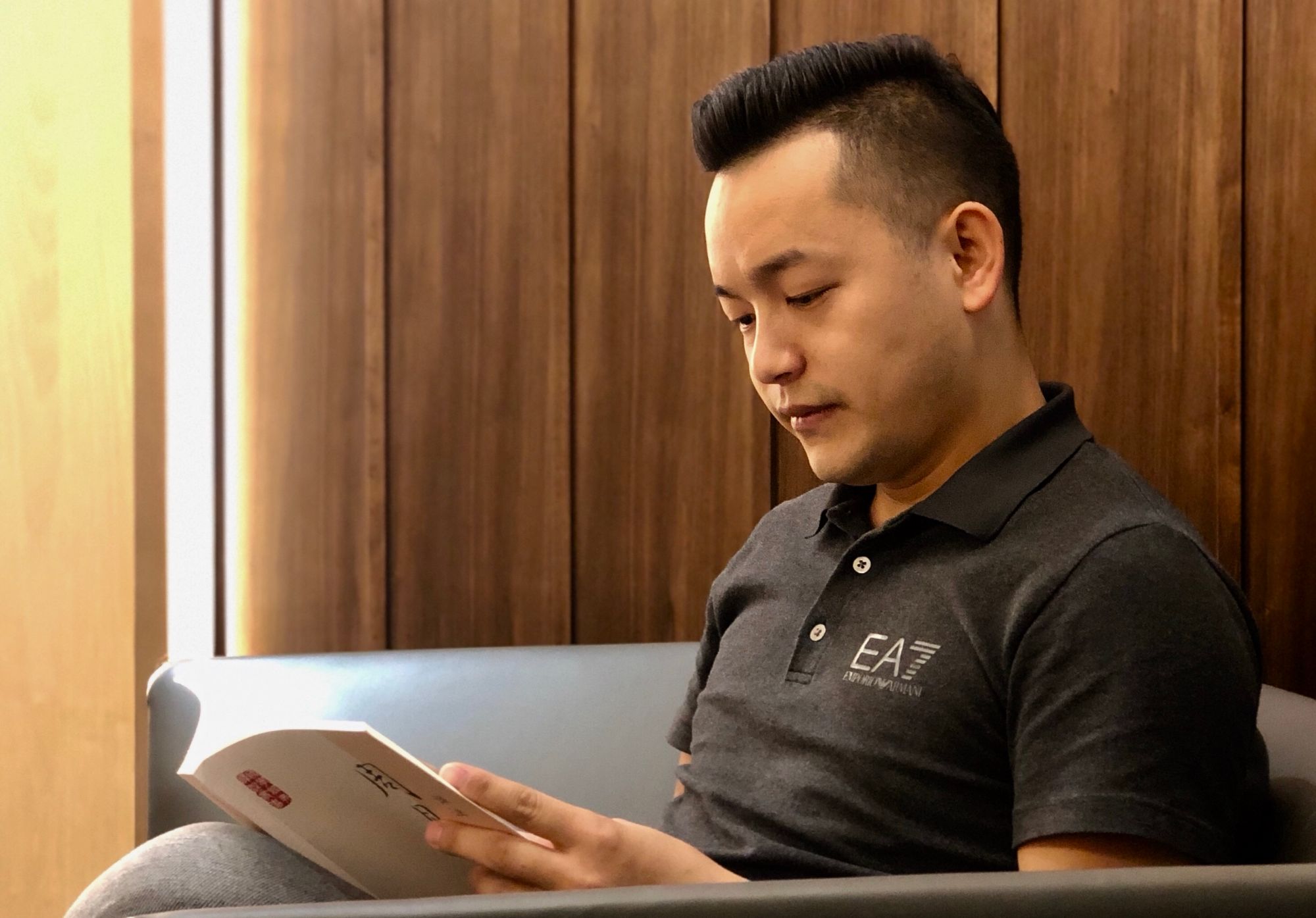新晉“超級奶爸”肖誠老師手捧書本的專心致志▼