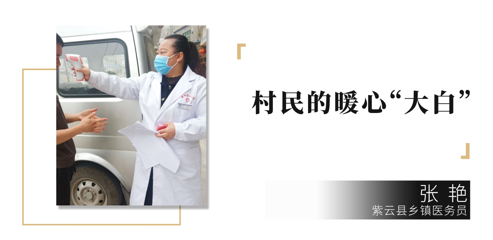 張艷,一名普通的醫(yī)務(wù)人員,疫情爆發(fā)后,她每天出勤到村里給老人、小孩測(cè)體溫、看病。24小時(shí)隨叫隨到的她,工作量比平時(shí)增加了三倍,但她不抱怨,也不喊累,天天挨家挨戶去“ 嘮叨 ” :“ 今天家里什么情況,有沒有新回來的人,千萬不要去串門,哪里不舒服了趕緊告訴我…… ” 她就像《超能陸戰(zhàn)隊(duì)》中的“ 大白 ”一樣,讓村民們很暖心。