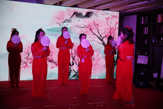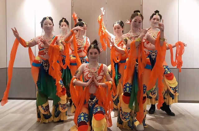 衣裙飄曳,巾帶飛舞,橫空而飛,四周天花飛落,敦煌飛天是中國(guó)藝術(shù)家最天才的創(chuàng)作,是世界美術(shù)史上的一個(gè)奇跡。設(shè)計(jì)部“七仙女”表演敦煌舞蹈《風(fēng)起霓裳》。