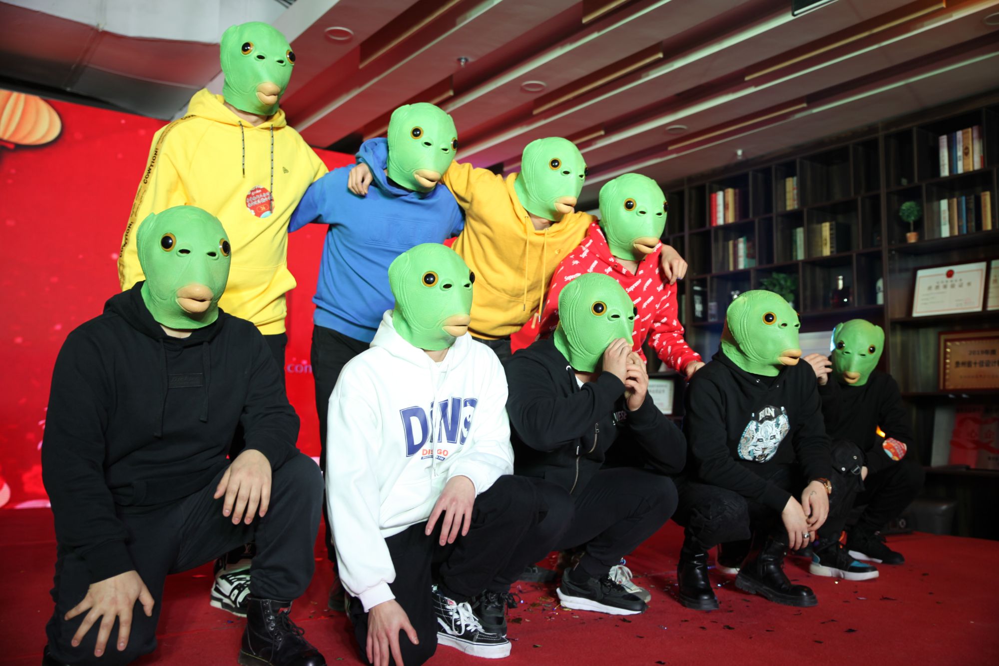 同樣”顛覆“形象的還有這樣一群人,平時(shí)在他們?cè)诖蠹倚闹械男蜗蠖际浅薄?、酷,但今天他們”豁“出去了,設(shè)計(jì)們帶上“奇奇怪怪”的頭套,表演有趣的《螃蟹舞》。