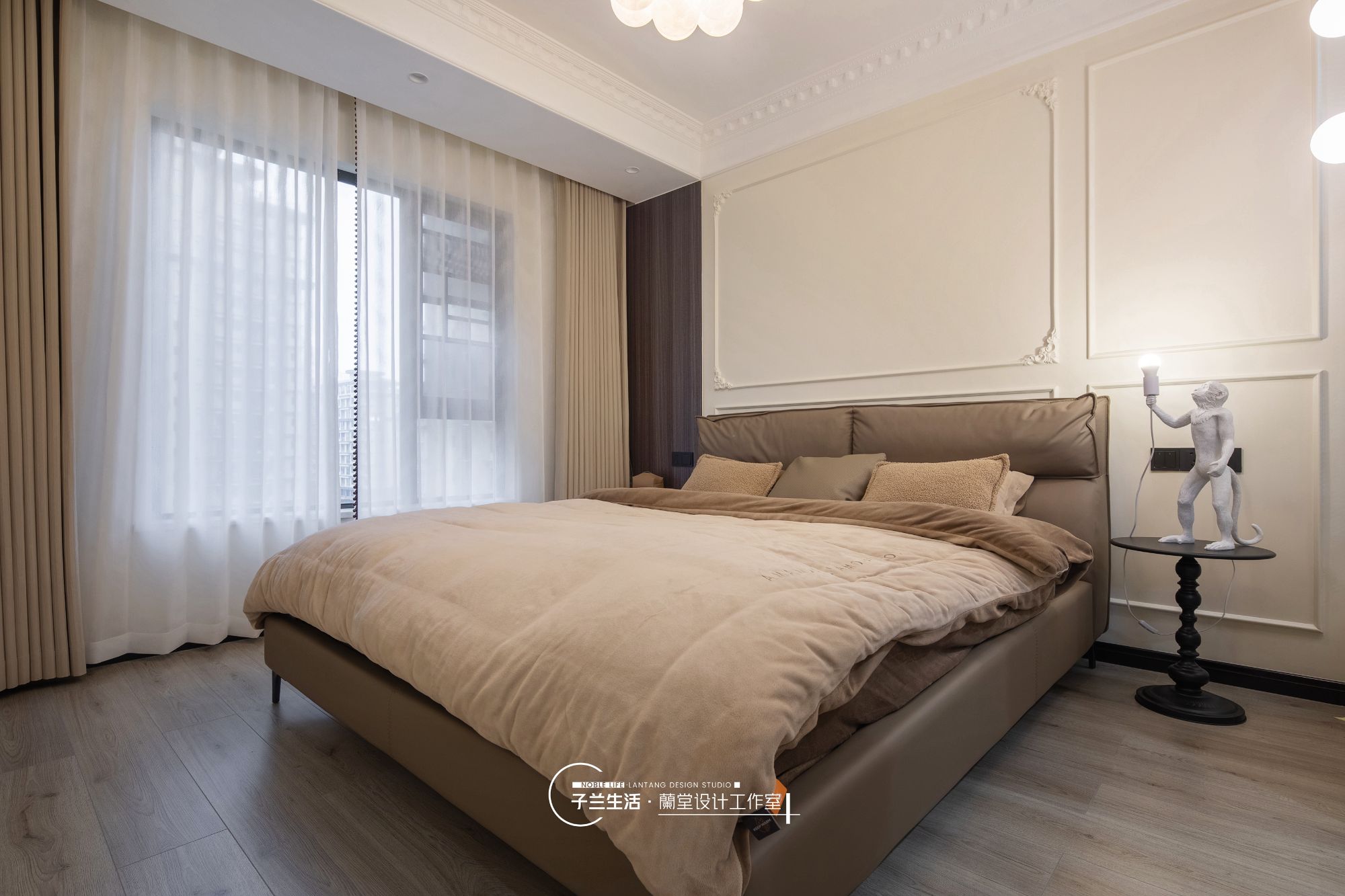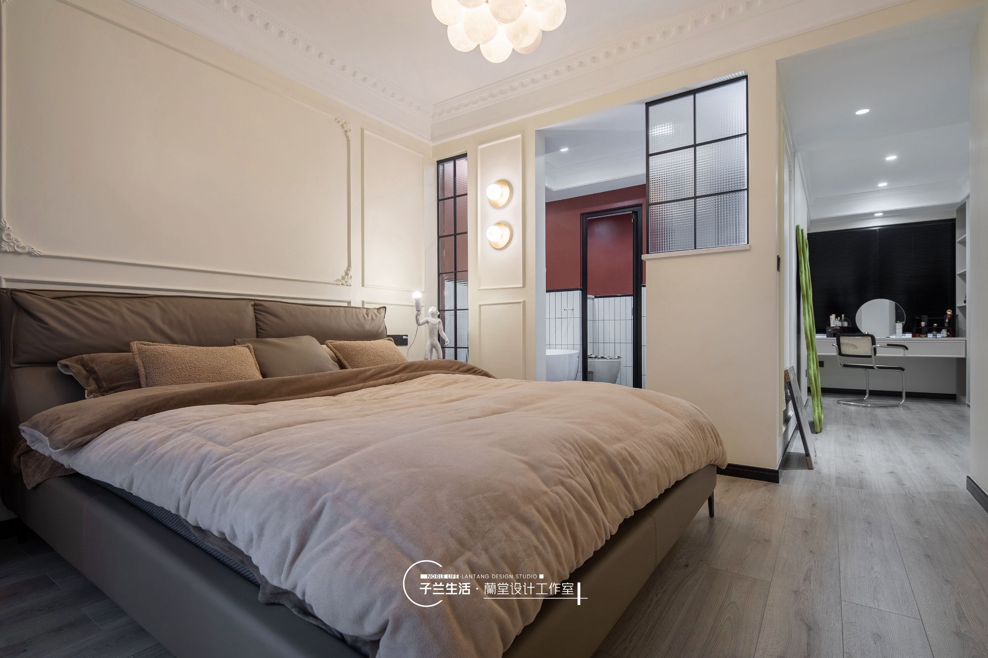 主臥是溫柔的奶茶色系,低飽和度的配色會(huì)給人一種慵懶的感覺,適合甜梨一直想要的法式的浪漫感。