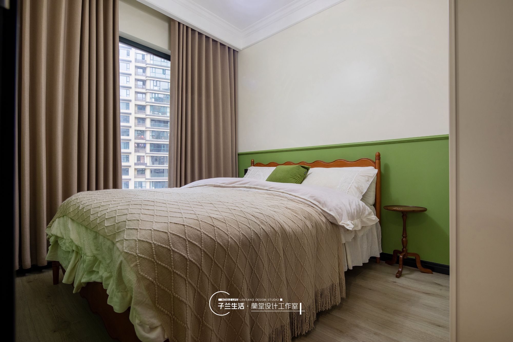 次臥主要是以綠色為主,清新又治愈,在這樣的房間里入睡醒來,真的是一種享受。