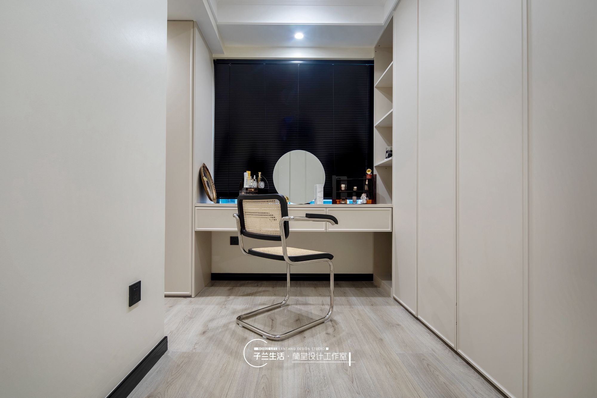整個(gè)衣帽間足足有20㎡,儲(chǔ)物難題完美解決,可以讓甜梨盡情買買買,這大概是每個(gè)女生的最愛吧。根據(jù)甜梨收納需求,衣柜以懸掛空間為主,多掛少疊放,選擇衣物時(shí)一目了然,提高日常出門效率,并且也減少了衣物褶皺的情況。平常的一些小物則收納在抽屜里,視覺更清爽。衣帽間里同時(shí)還給她設(shè)計(jì)了精致的妝臺(tái)區(qū),化妝成了一種美的治愈~
