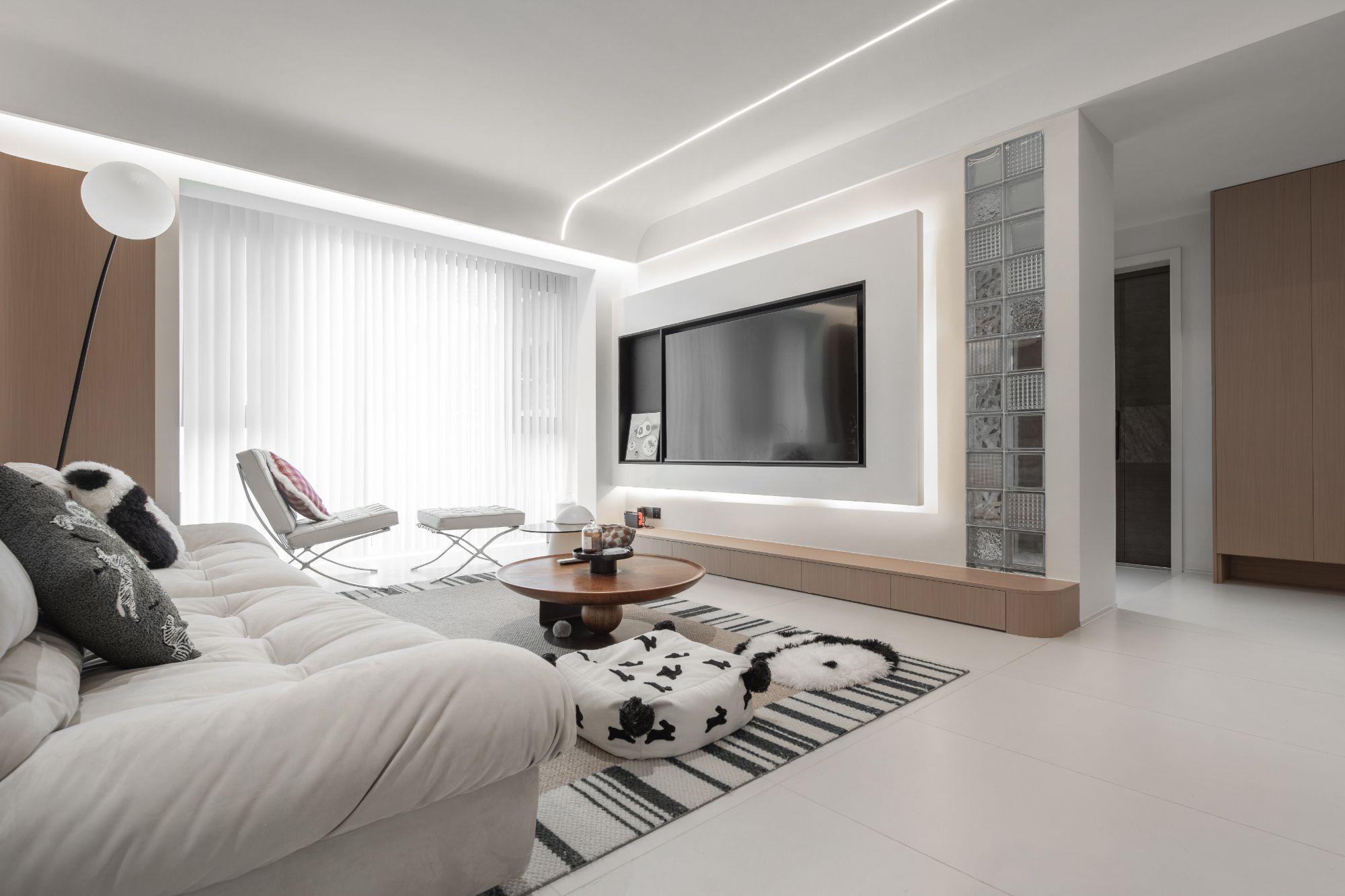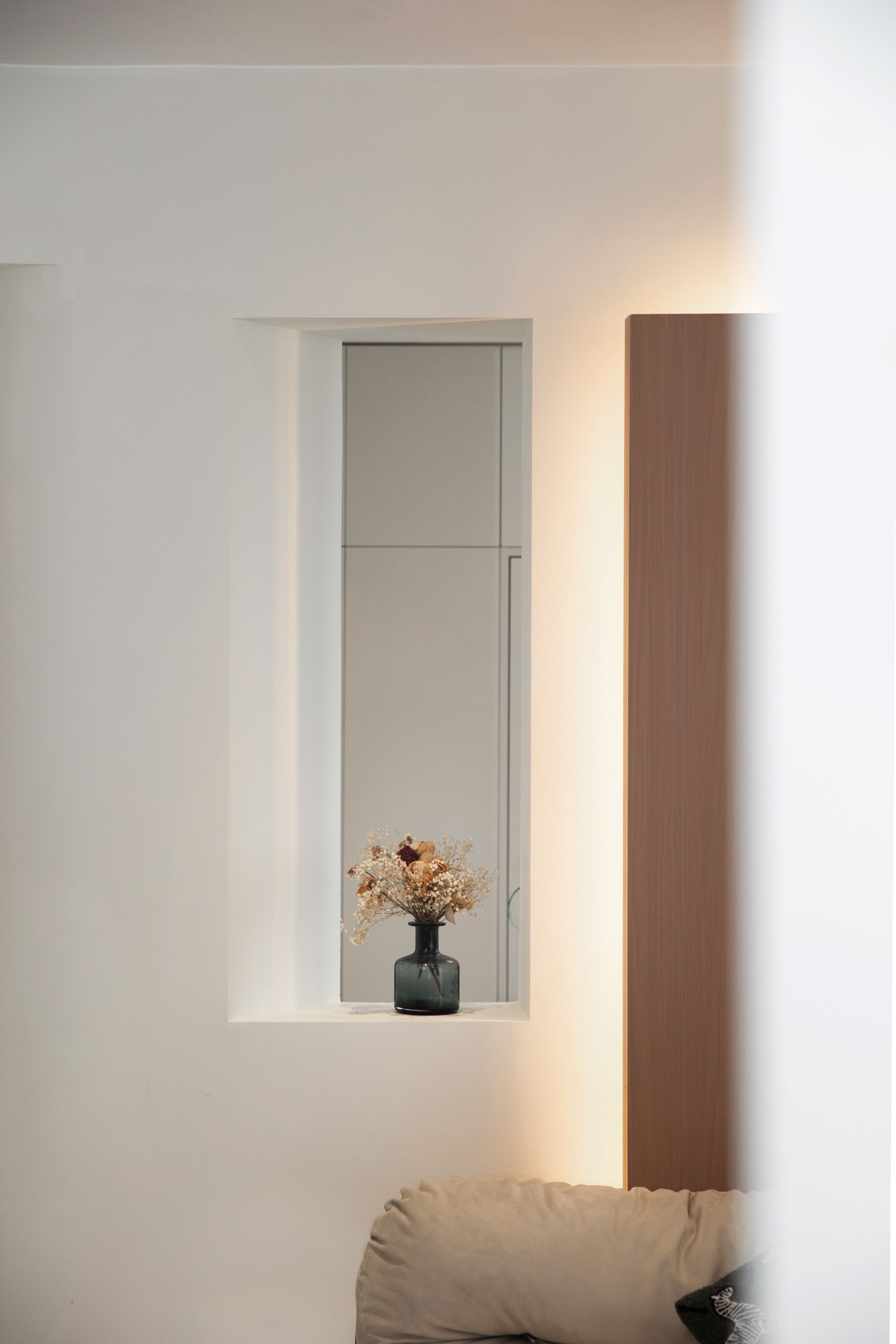 在我們的客廳里,有一個特別的地方,我們敲掉沙發(fā)背景墻的一部分,做了一個小窗景,通過小窗景,還可以看到多功能房里的一切。有時貓咪會跳上窗臺站在那,像一只招財貓的擺件品,每天晚上,當我和愛人坐在沙發(fā)上,貓咪總是會迫不及待地跳上來貼貼,擺出各種搞怪的表情和動作。我們會用它喜歡的玩具逗弄它,一起奔跑在客廳里,和它一起蜷縮在沙發(fā)里,這是我們不平凡的日常生活,也是向往的生活。