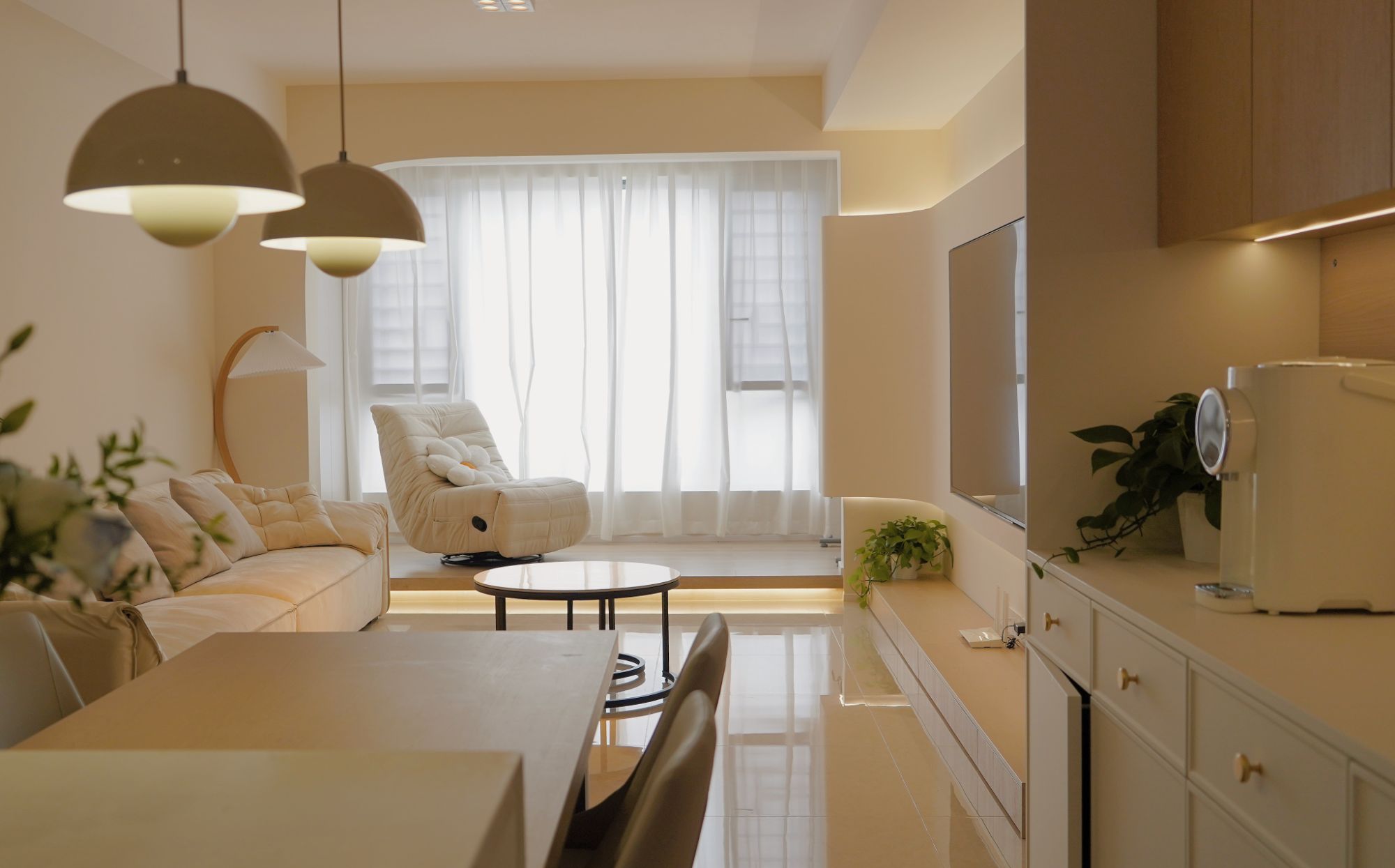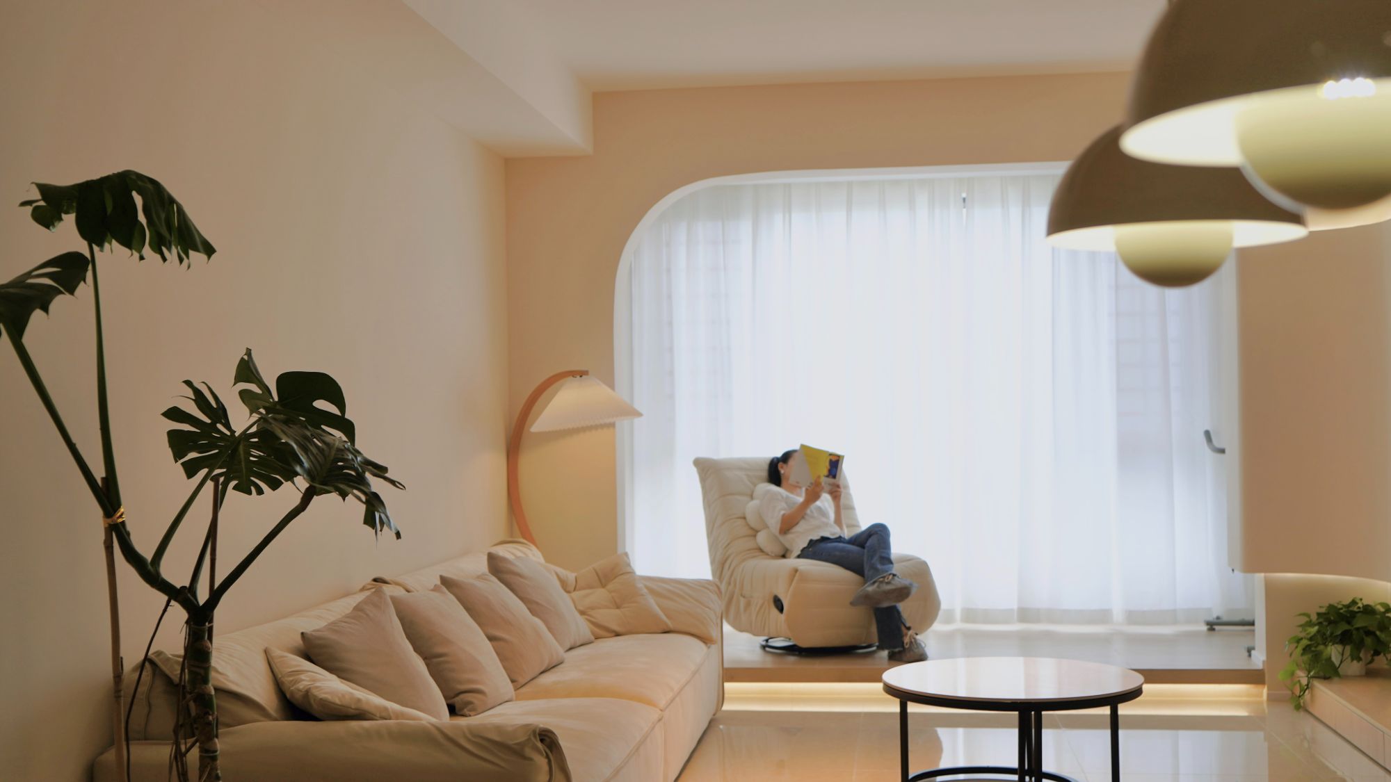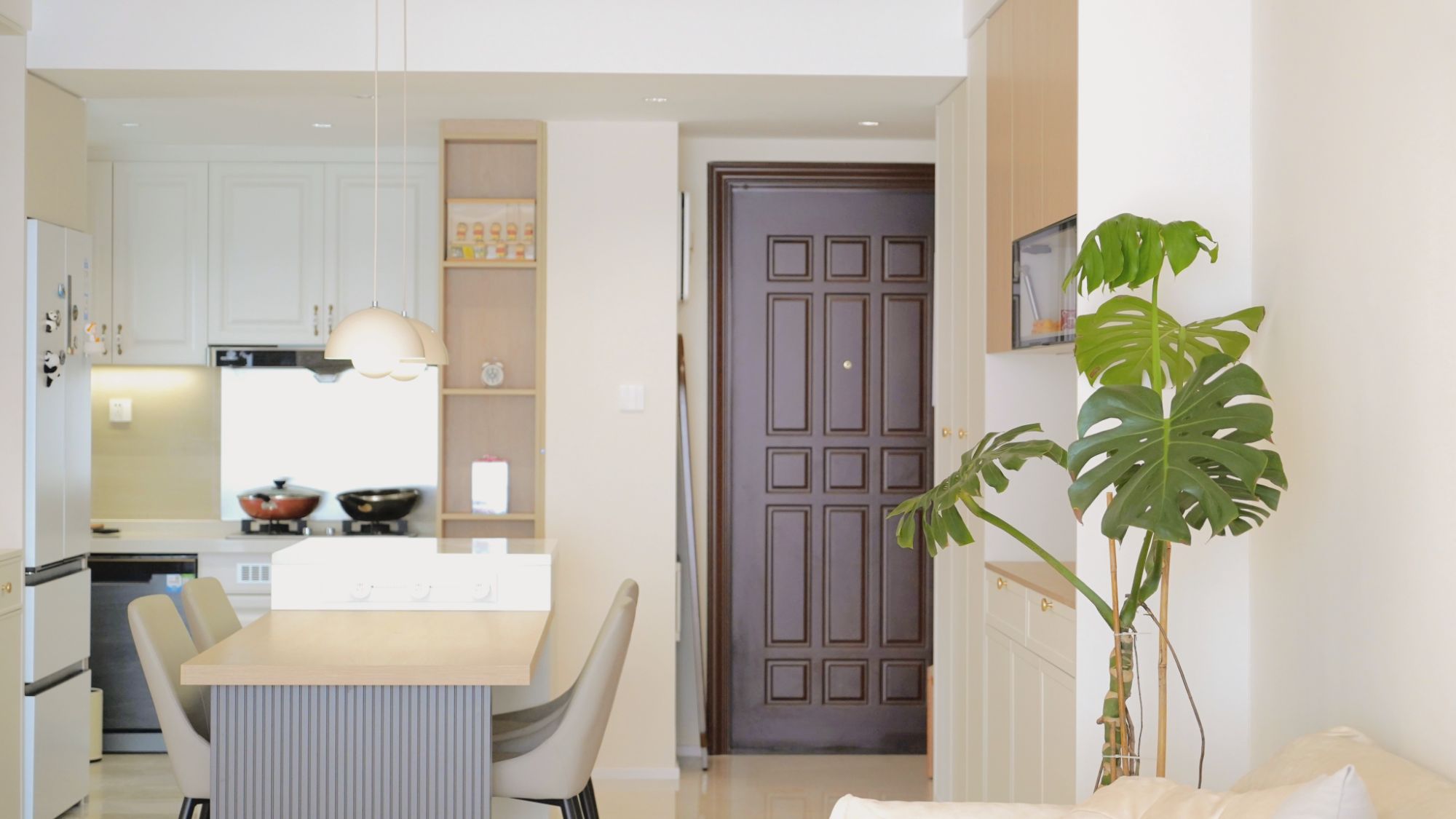 這套房是Evan和貝貝的準婚房,兩人都非常注重親密關(guān)系、居住體驗以及未來小孩和長輩同住的場景。Evan和貝貝同從事IT行業(yè),對于家,他們更想要“純享版”,沒有工作紛擾,不為面子豪華,只想要一個用來讀書、發(fā)呆、烹飪的療愈系居心地。