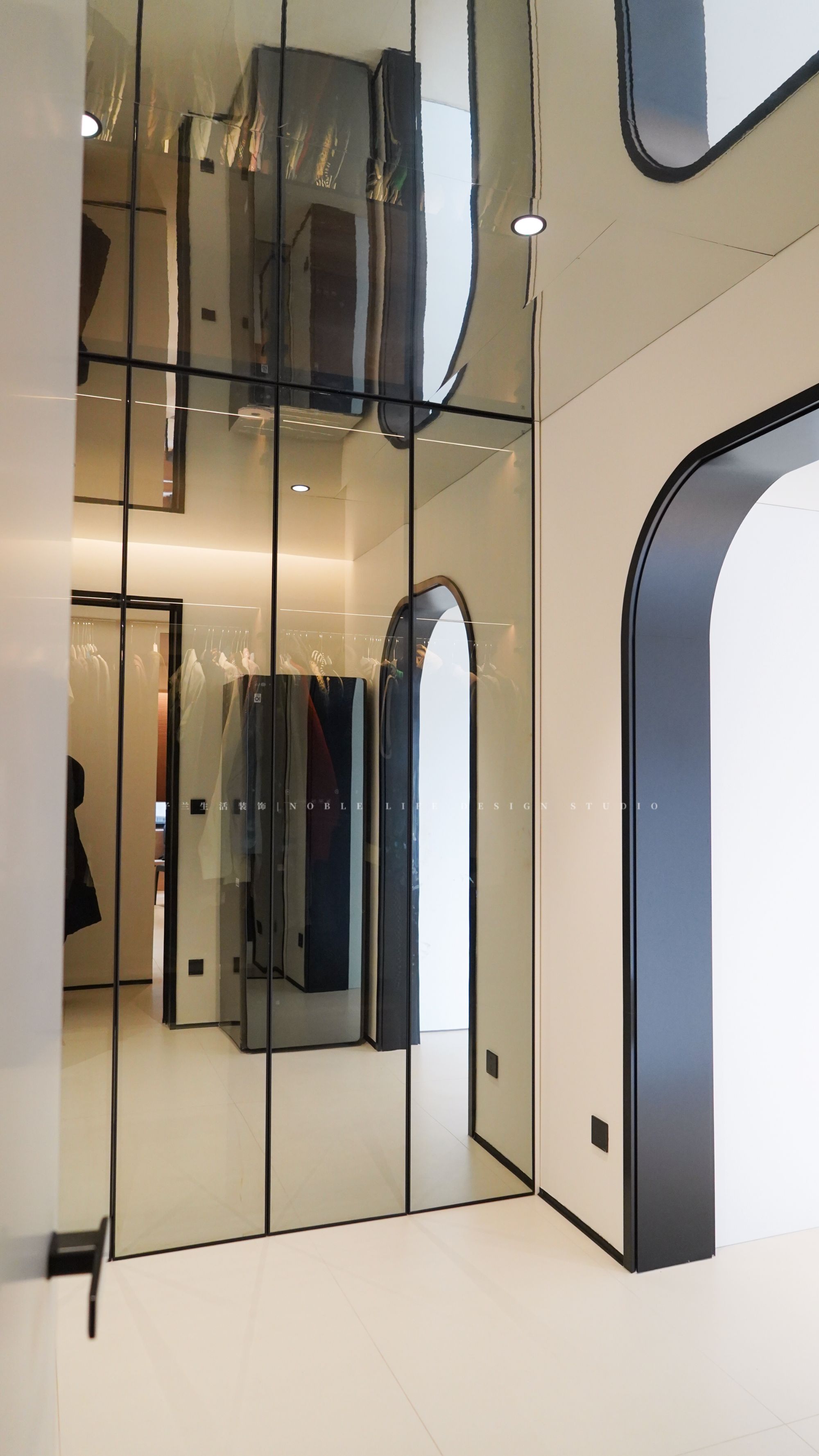 緊挨著主臥的次臥被一分為二,改造成衣帽間和Yuki先生的電競房。12㎡的衣帽間采用360°鏡面,讓空間感倍增!仿佛引領著Yuki有踏入了高端百貨的奢侈品區(qū)。她在這里可以盡情地試穿她的各種戰(zhàn)利品,從優(yōu)雅的小黑裙到舒適的T恤,每一件都承載了她的故事與心情。
