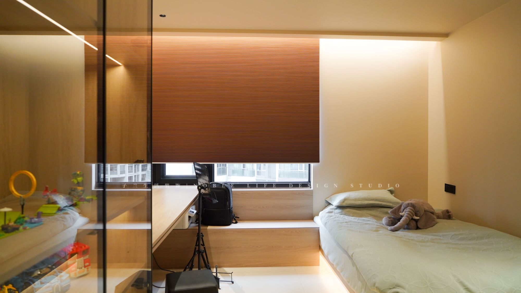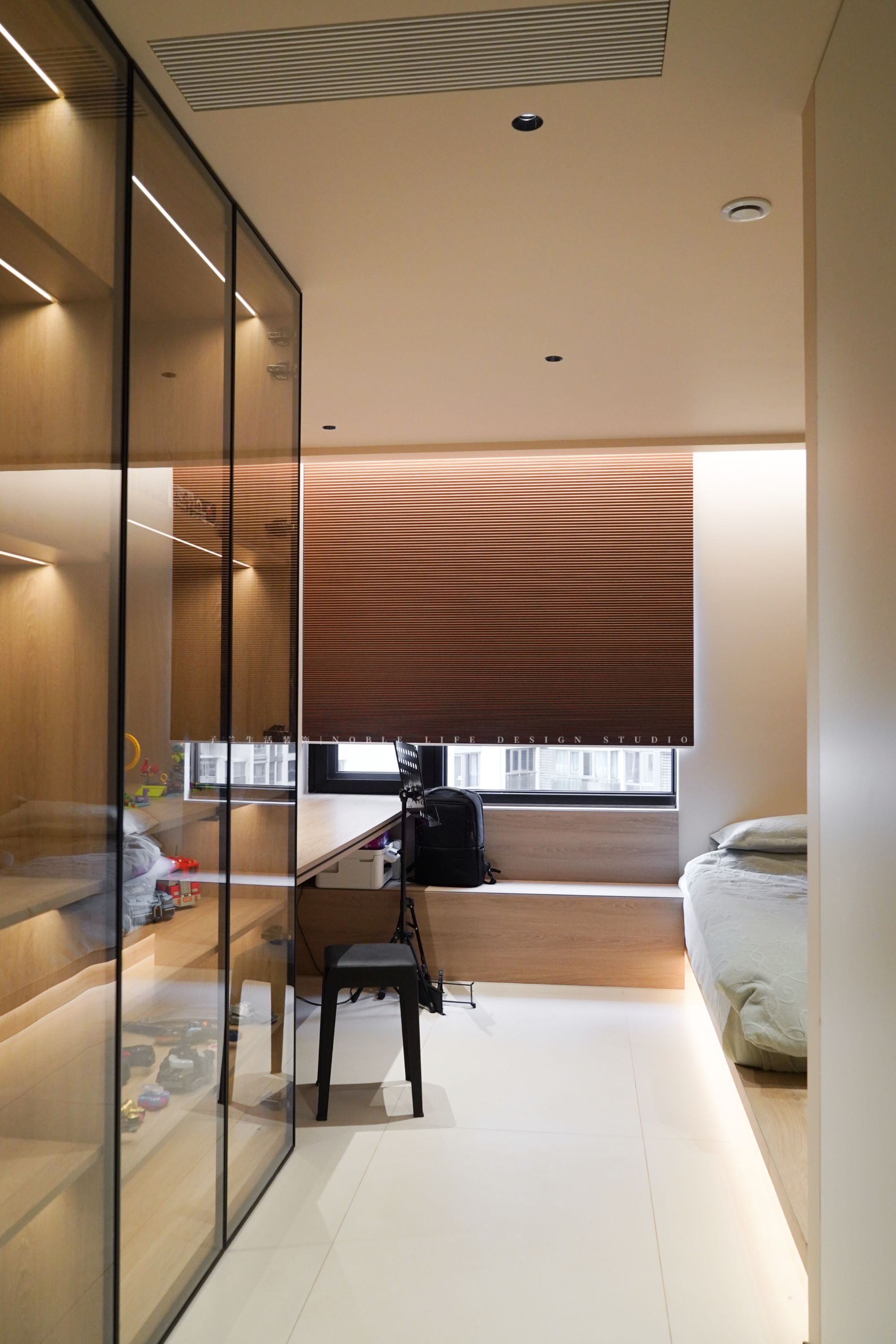 在Yuki家中,每個角落都充滿了精心設計的溫馨與實用。孩子的世界也得到了充分的考慮,玩具們都有自己的專屬領地,讓人不禁大呼“羨慕”!為了給孩子一個有序的玩??臻g,Yuki做出了一些犧牲與調(diào)整。舍棄6m長的觀景陽臺并入兒童房,增加房間的實用面積,在進門的左側(cè)做通頂柜放置孩子的玩具,右側(cè)則打造一個U型衣帽間。