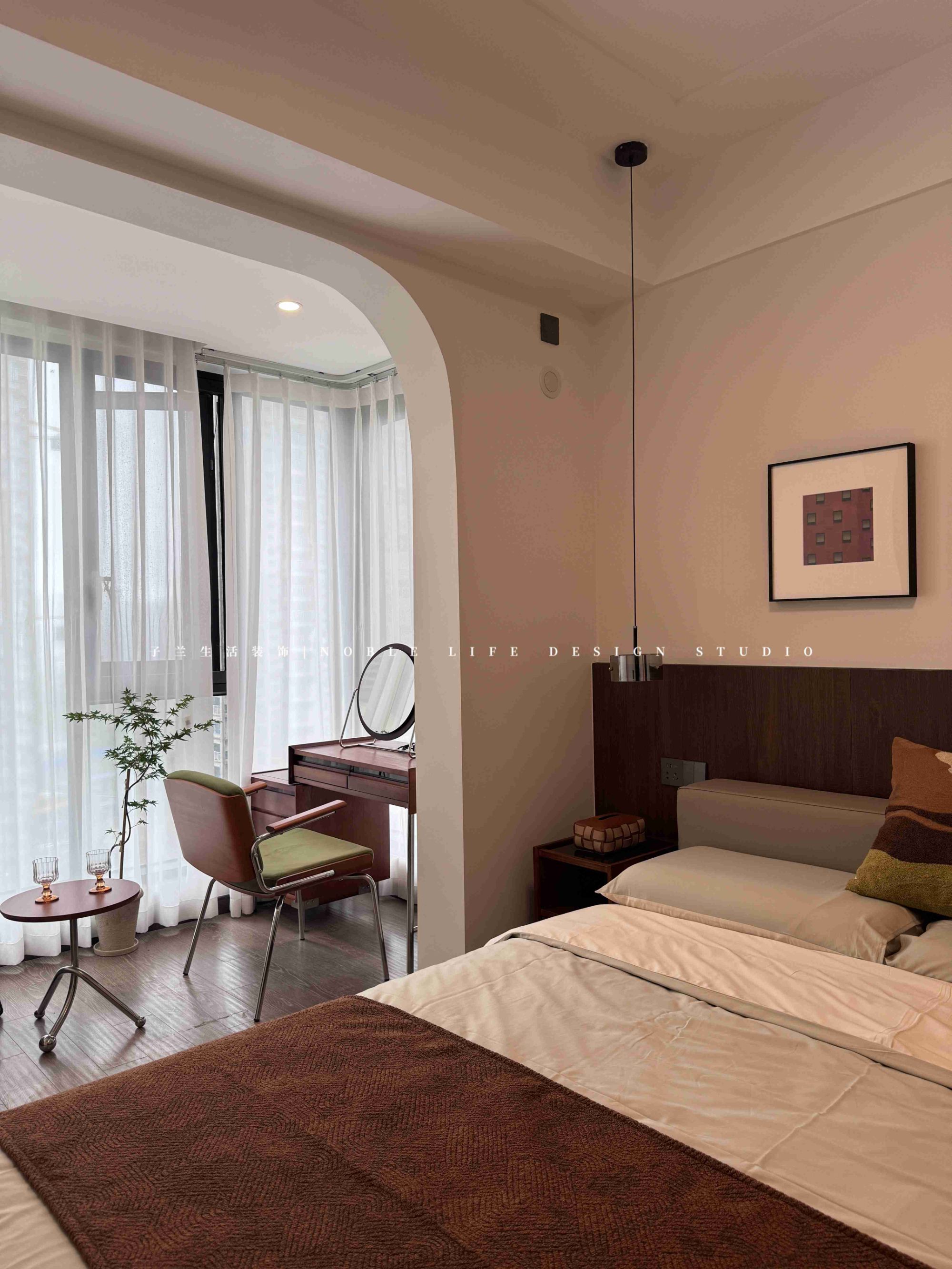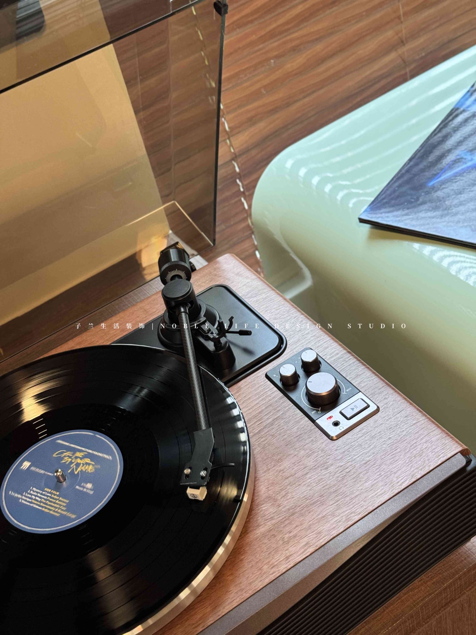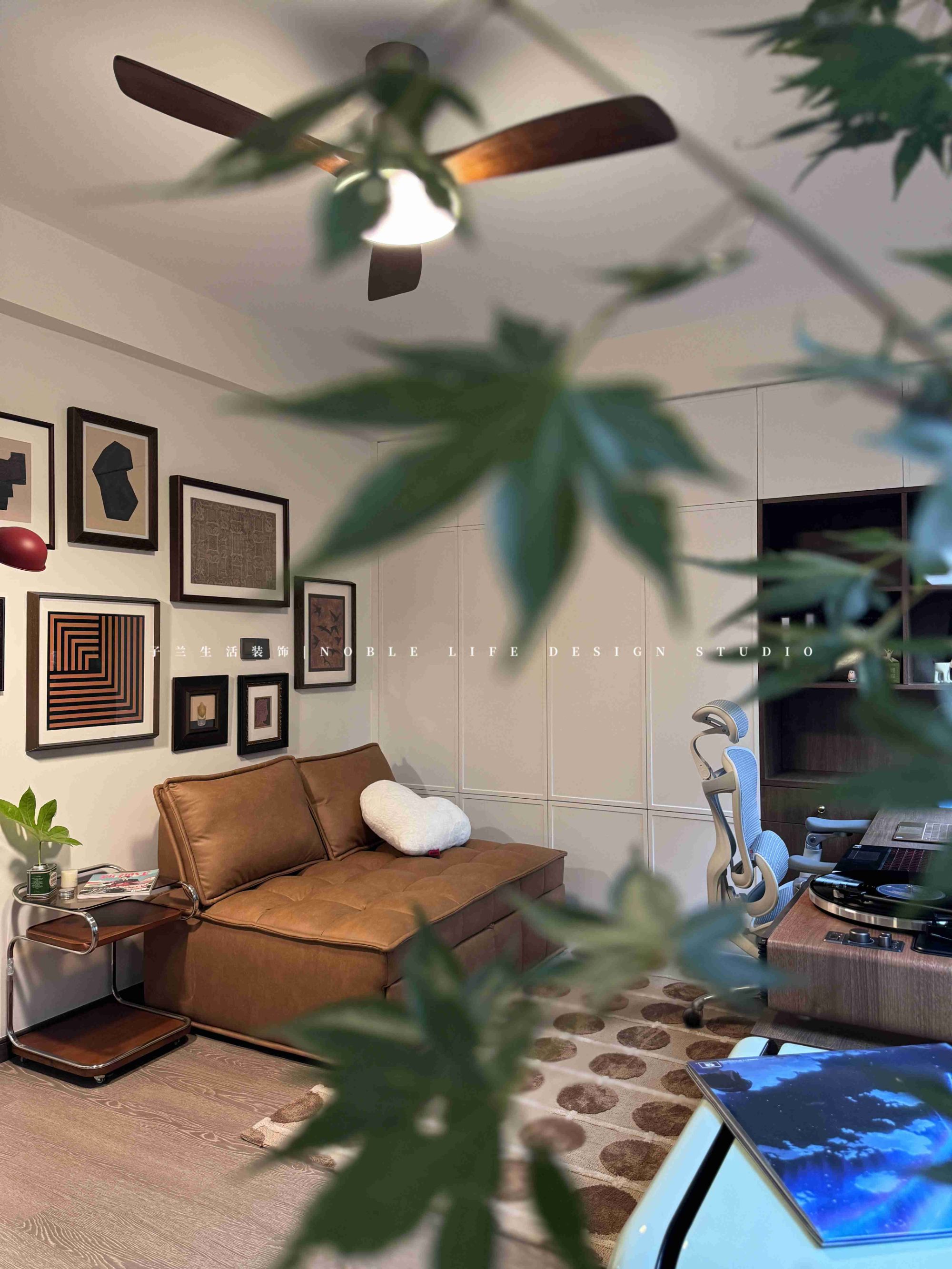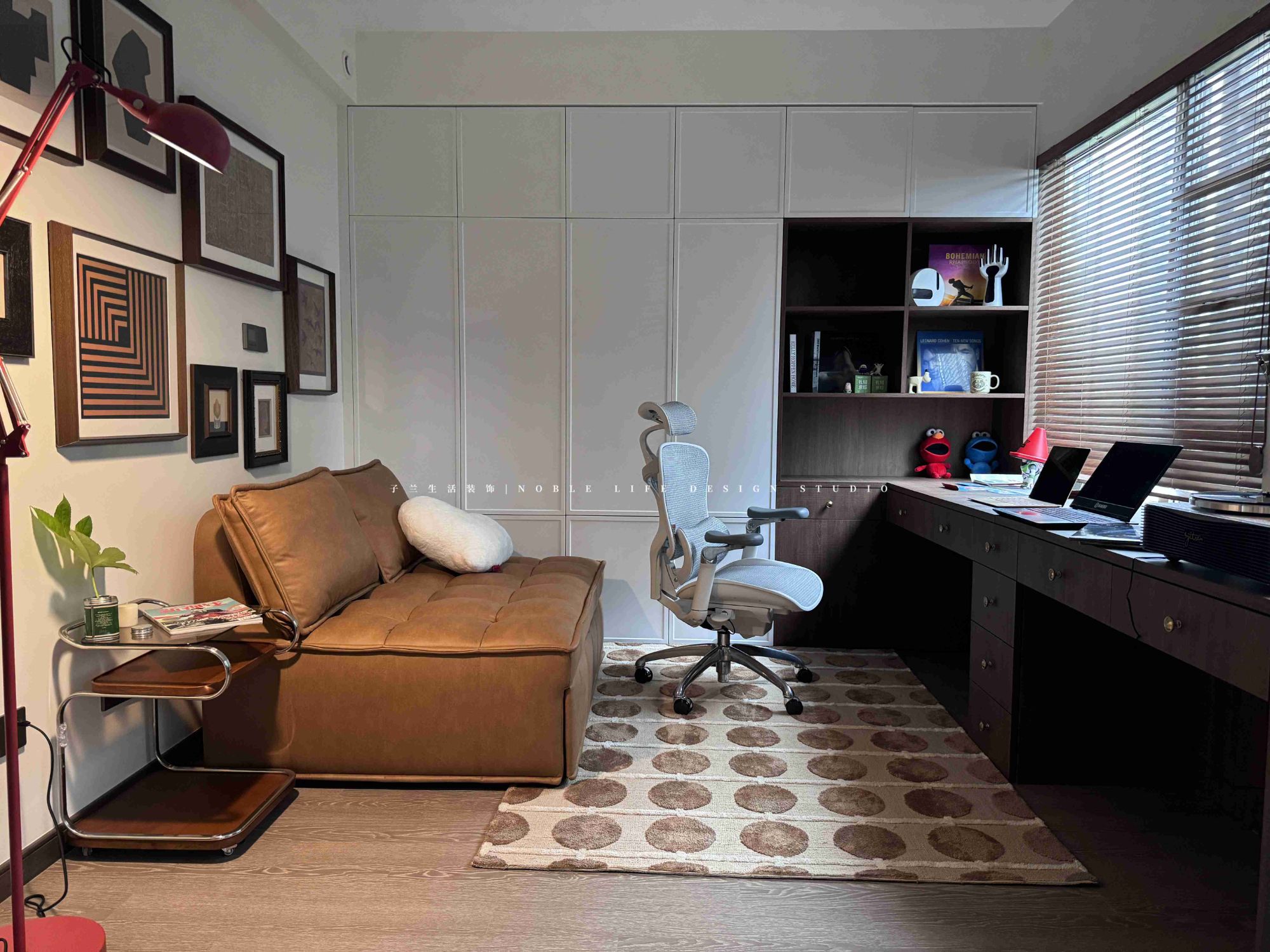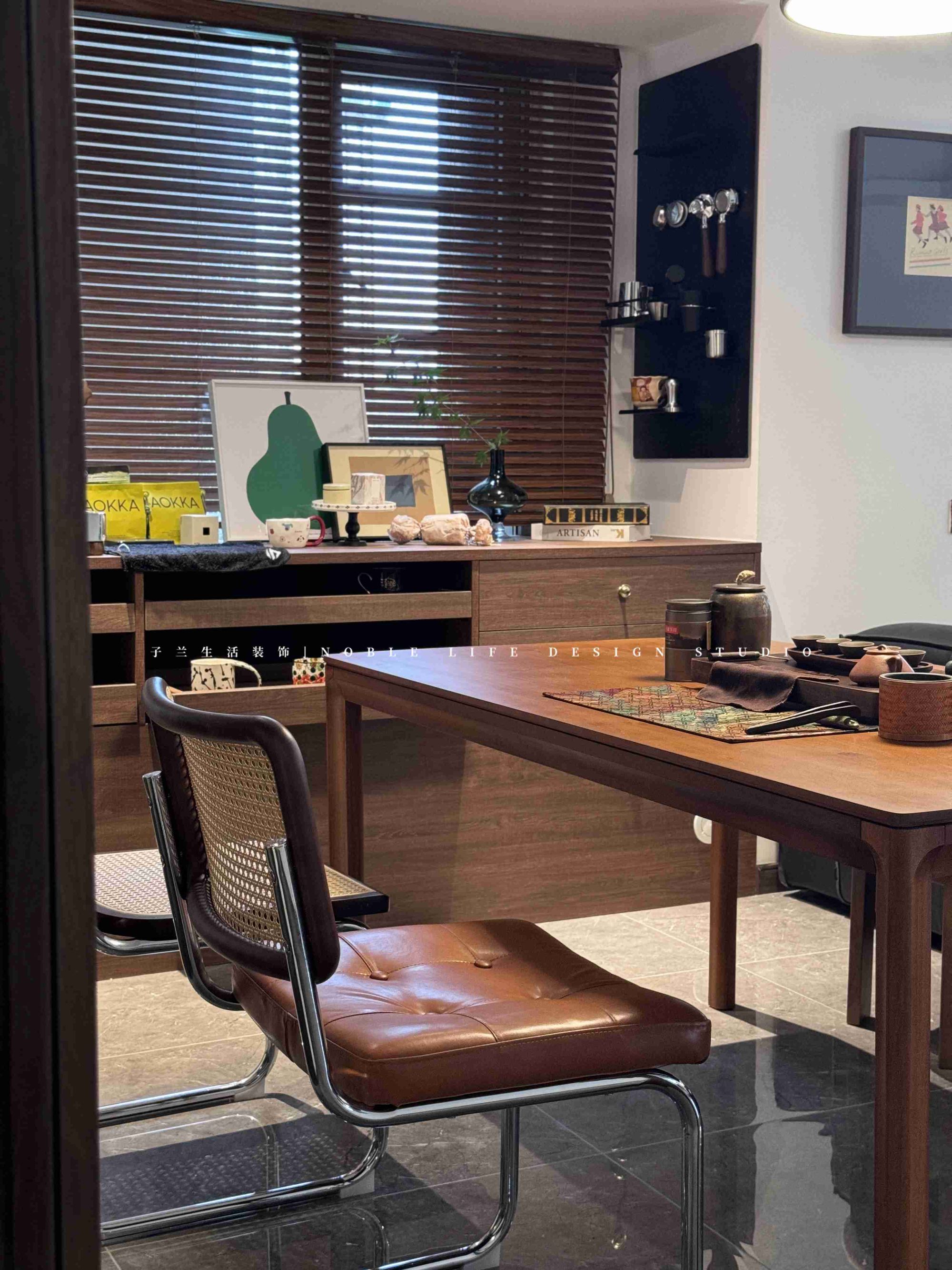 “多功能房是我日常最喜歡待的地方。是我的精神小屋。不工作的時(shí)候,每天都要好好生活,享受閑暇時(shí)光?!?靠窗木質(zhì)長書桌,陽光從百葉窗斑駁灑進(jìn)窗臺(tái),再打開一張唱片,沒有工作的時(shí)候,只有生活的松弛與閑趣。