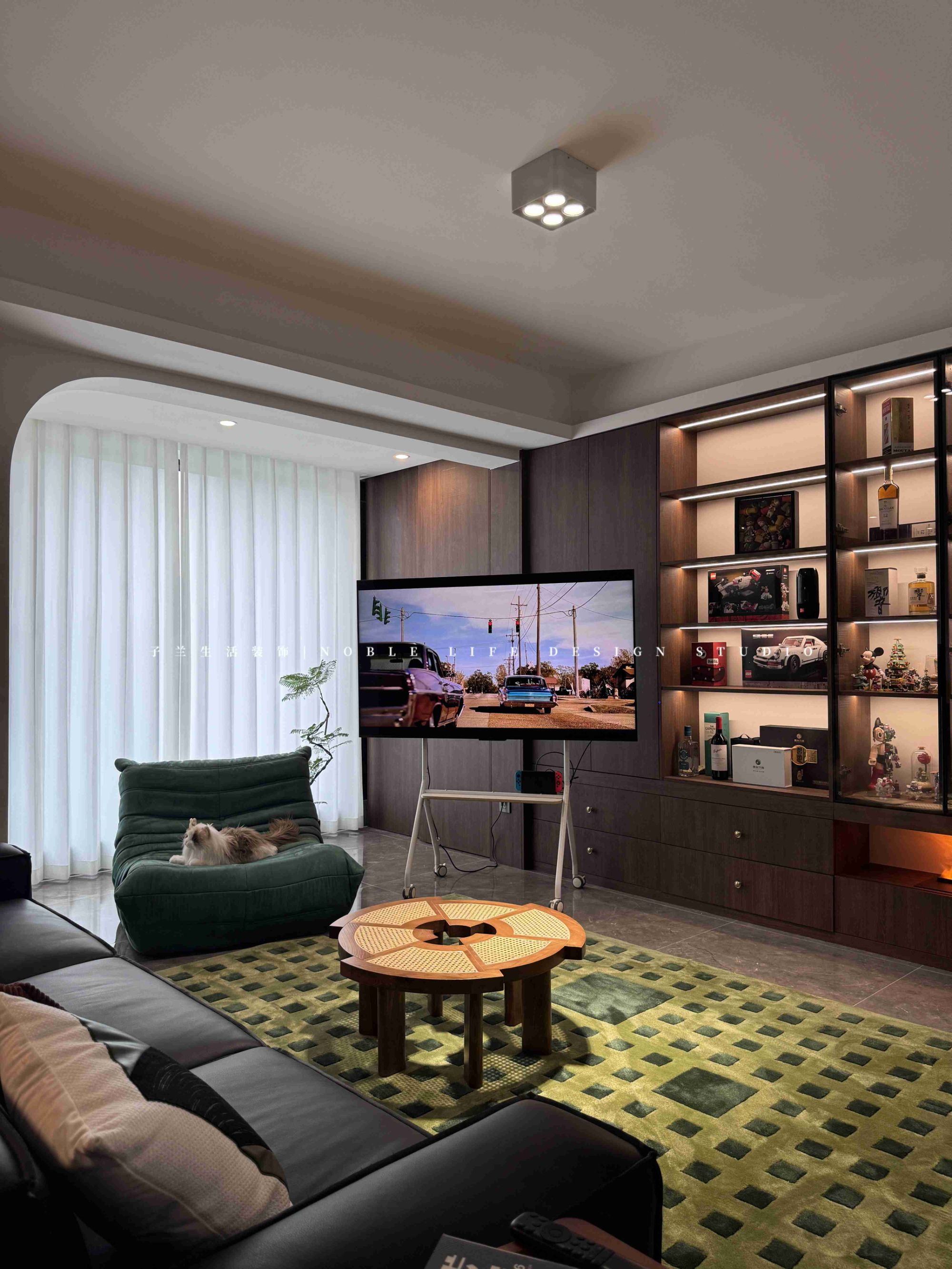 開放式客廳任性而自由。 “電視隨意拖動(dòng),我和朋友就坐在地毯上看看電影、玩玩手柄游戲?!备鎰e傳統(tǒng)電視墻,改為整面收納、手辦展示柜。愛好竟藏眼底。 完美的沙發(fā),能讓每次倒下都變?yōu)樘善健!拔沂荌人,但我也享受和朋友間的聚會(huì)。我們已經(jīng)定好今年圣誕節(jié)在家里度過,我要在客廳布置一顆圣誕樹?!?寬闊的客廳,讓聚會(huì)更加肆意。